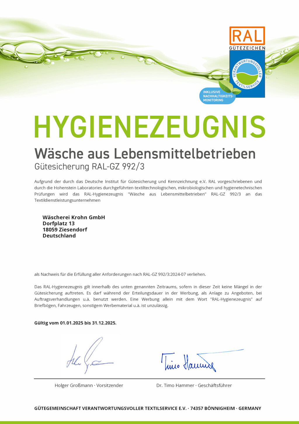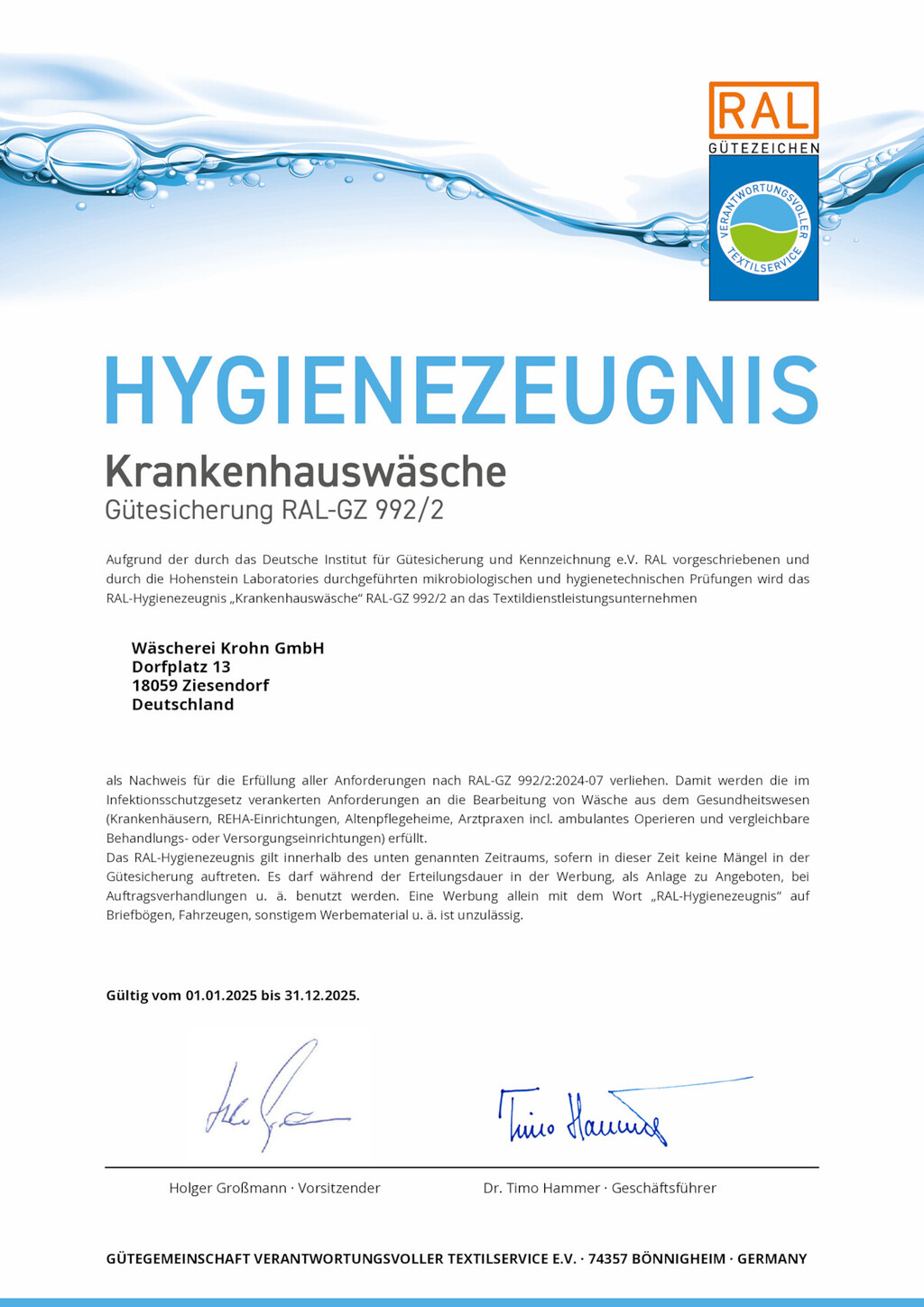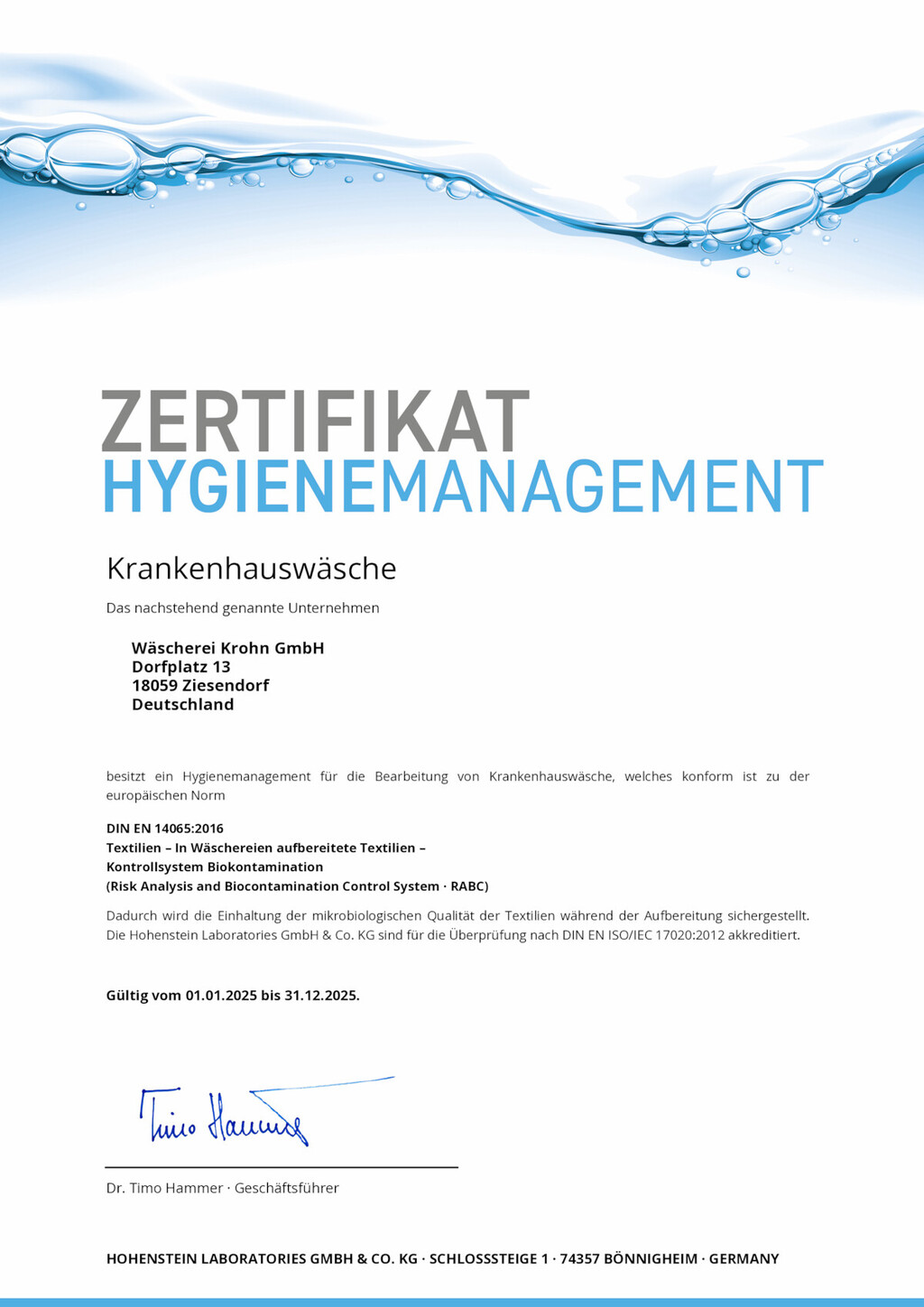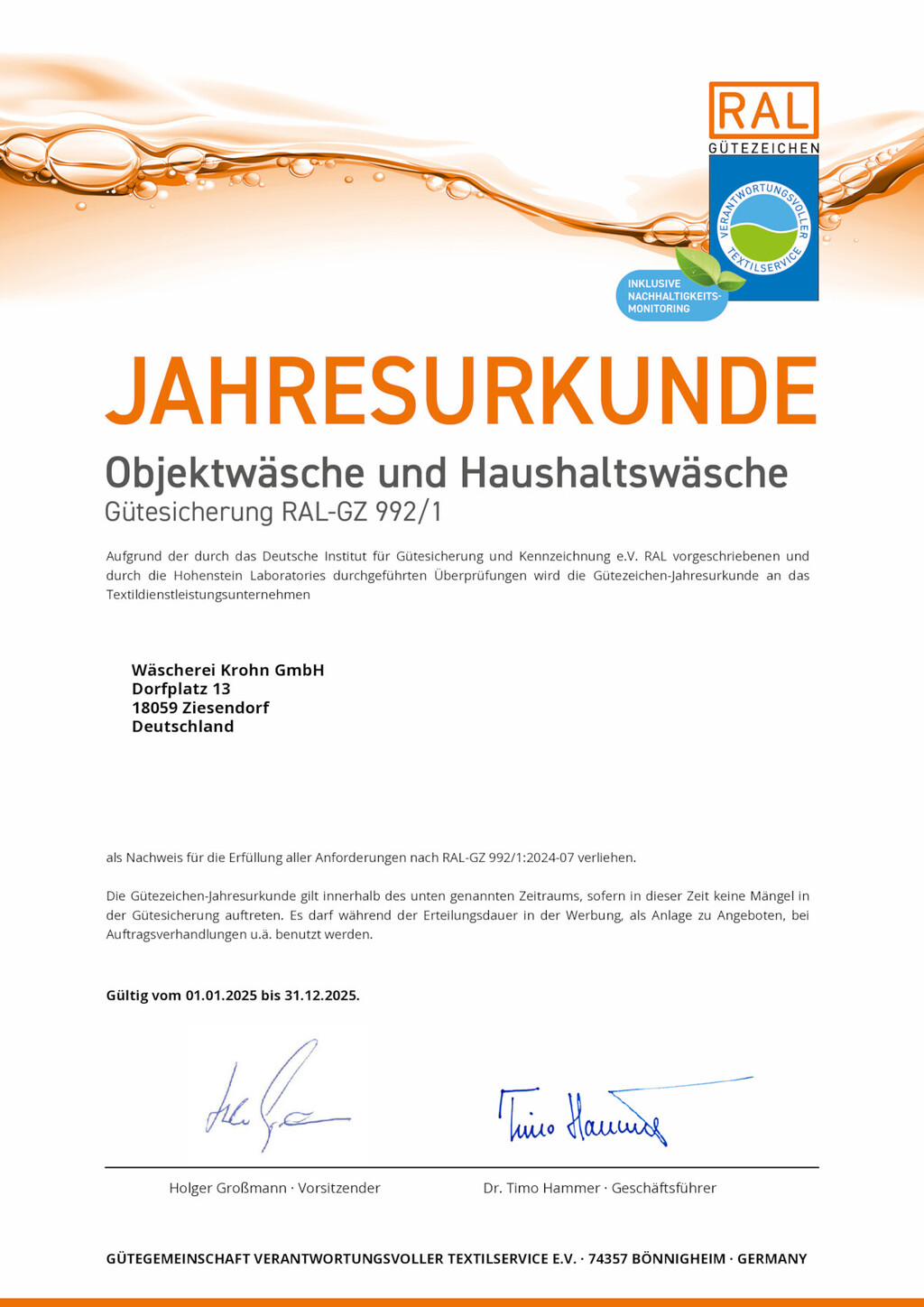 Wäscherei Krohn GmbH – Tradition, Qualität und Service seit 1909.